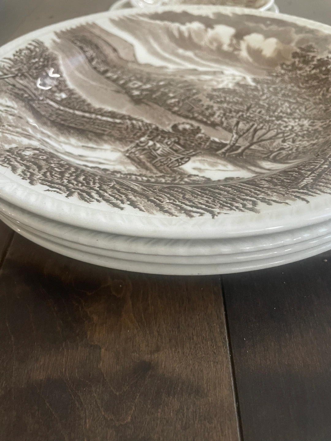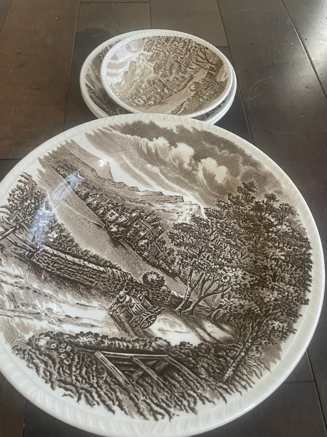 Selling a collectable set of Westmorland Wood & Sons Burslem plates. They are made in England and feature a genuine hand engraving pattern under the glaze. These plates are also acid and detergent proof, making them durable for everyday use. Comes with what is the picture. Pick up is in Chappelle. Asking $100.
