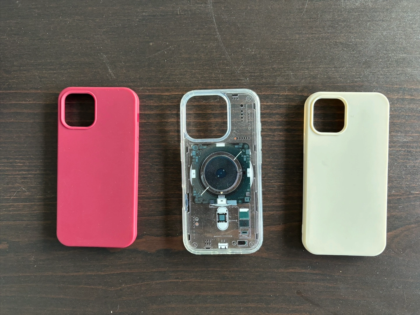 Selling a few iPhone cases! There is a clear one for Iphone 16, one white and one dark pink/pale red for Iphone 13. They're all new