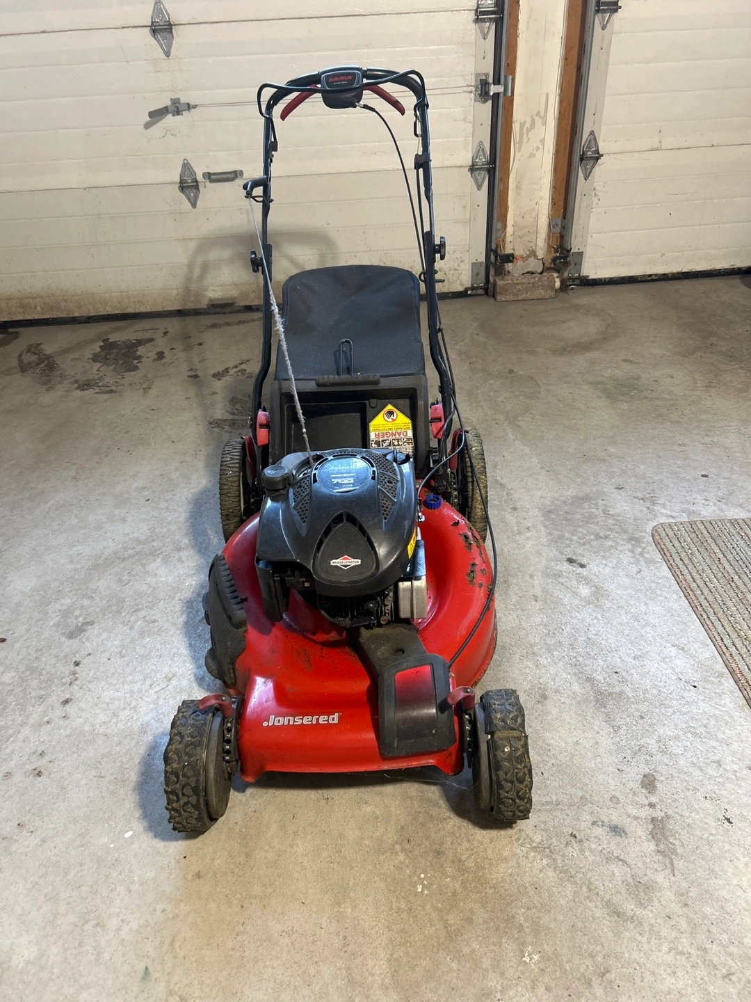 Selling a Jonsered lawn mower with a Briggs & Stratton engine! It's in used condition and ready to help keep your lawn looking great. The engine is a 7.00 Torque Power model. 3 brand new air filter included.