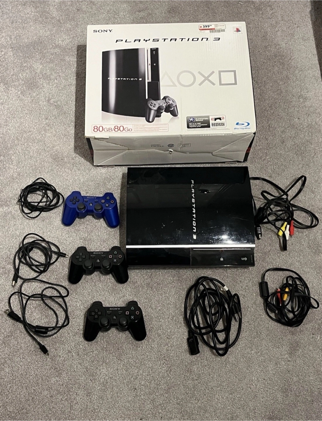 Sony PlayStation 3 PS3 Bundle, 3 Controllers In Box-Works great!