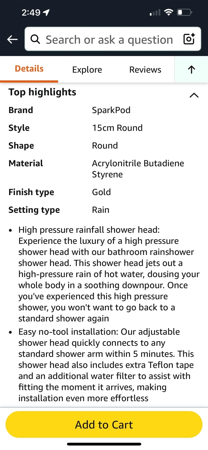 Looking to upgrade your shower experience? I'm selling a SparkPod 6" Luxury Rainfall Shower Head in Egyptian Gold!