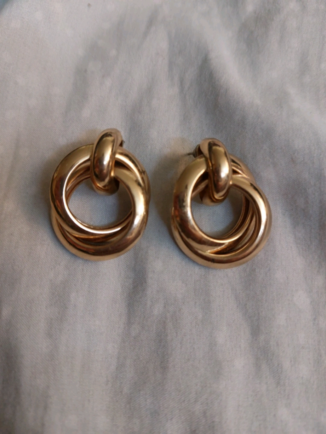 152Selling a pair of gold-tone hoop earrings. These are in great condition and ready to add a touch of elegance to your look!