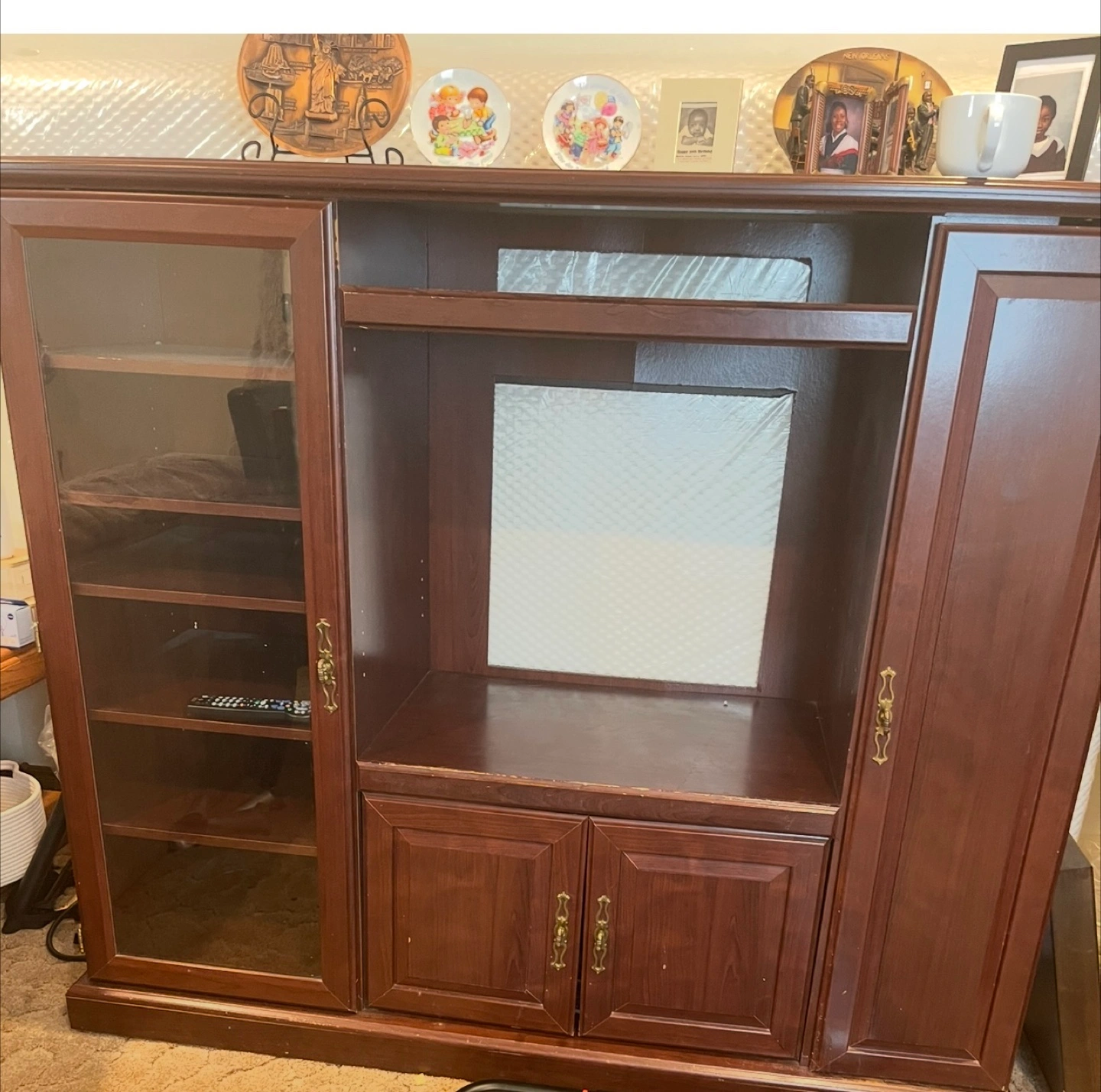 Entertainment Center for tv and accessories. Fairy used in good condition. Has extra storage on right side.