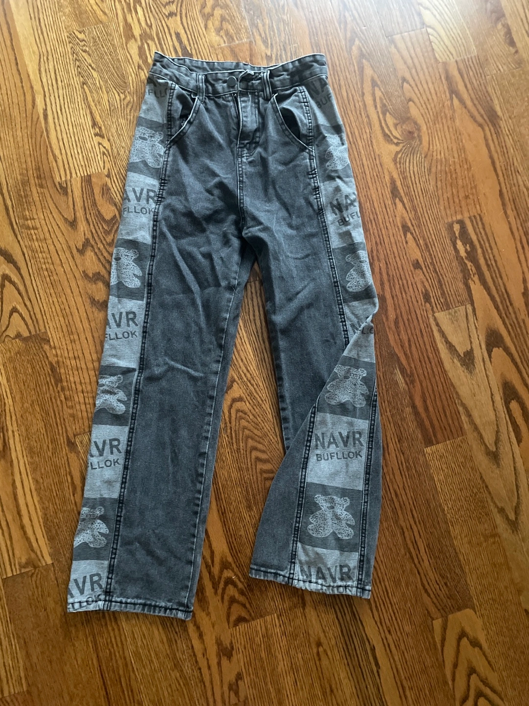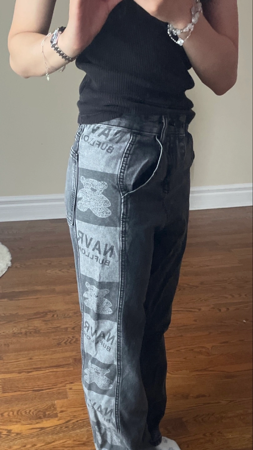 37grey washed jeans with bear design on the side of legs (i am 160cm for reference)