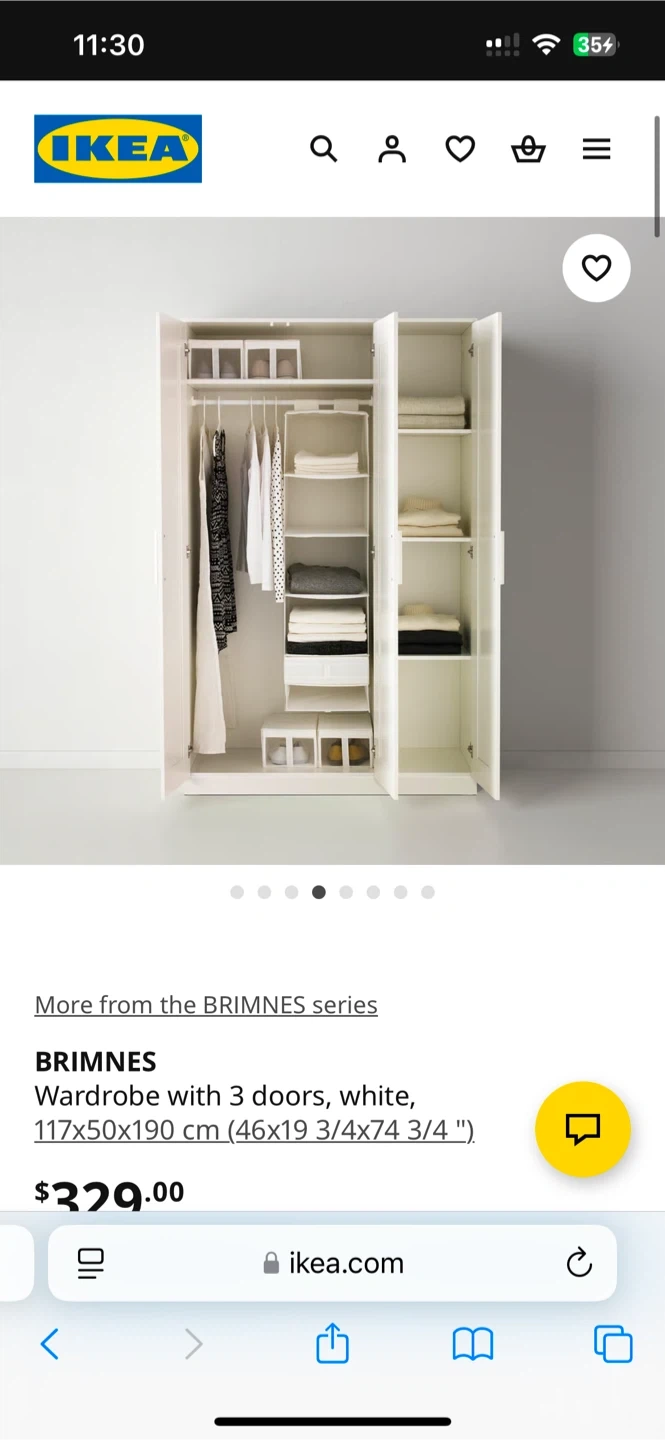 This is an IKEA BRIMNES wardrobe with 3 doors. It's white and measures 117x50x190 cm. It's perfect for storing clothes and accessories!