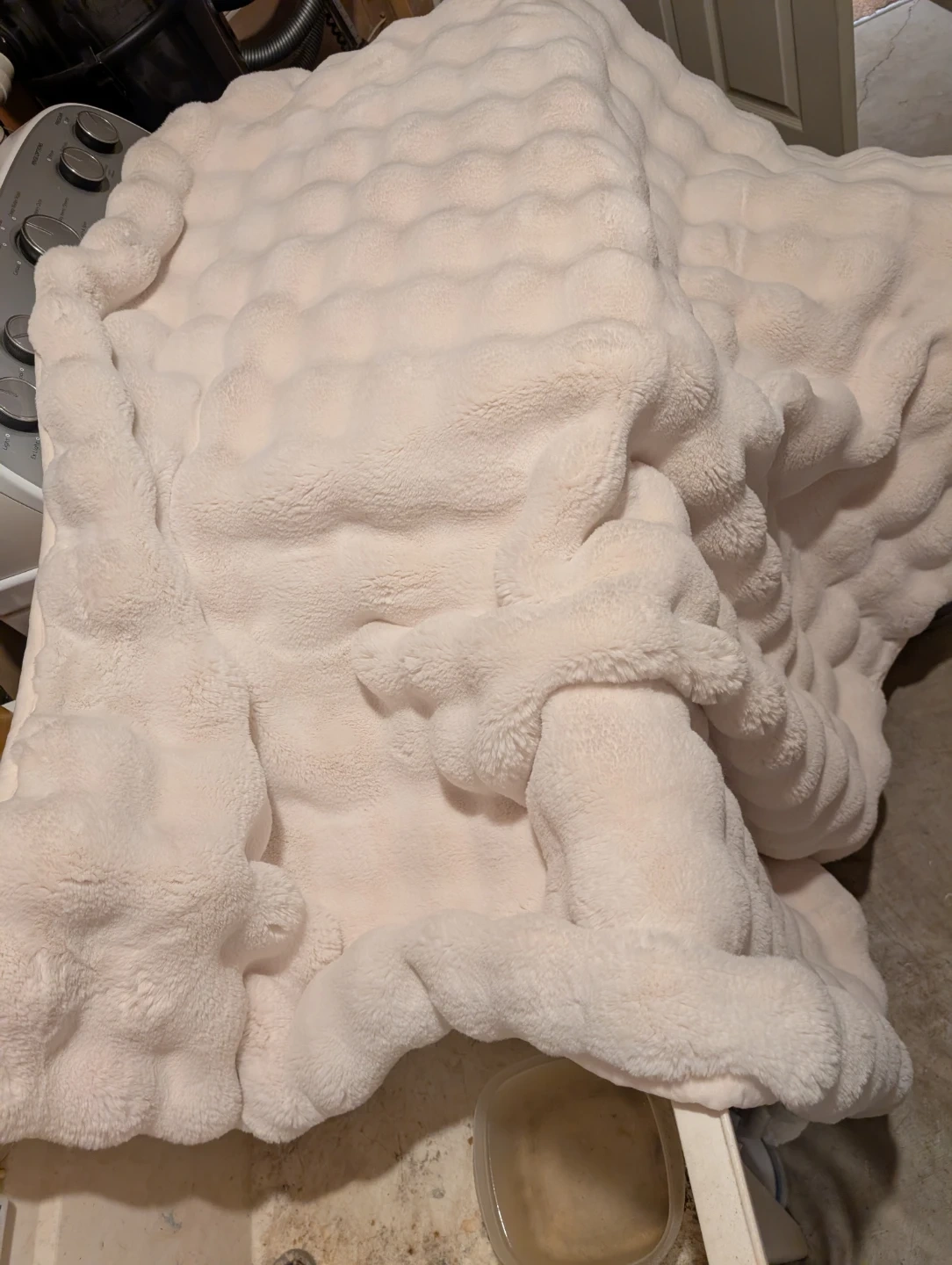 Cozy fuzzy throw blanket with a unique textured pattern. It's incredibly soft and perfect for snuggling up on the couch. This blanket provides extra warmth and comfort for chilly evenings.