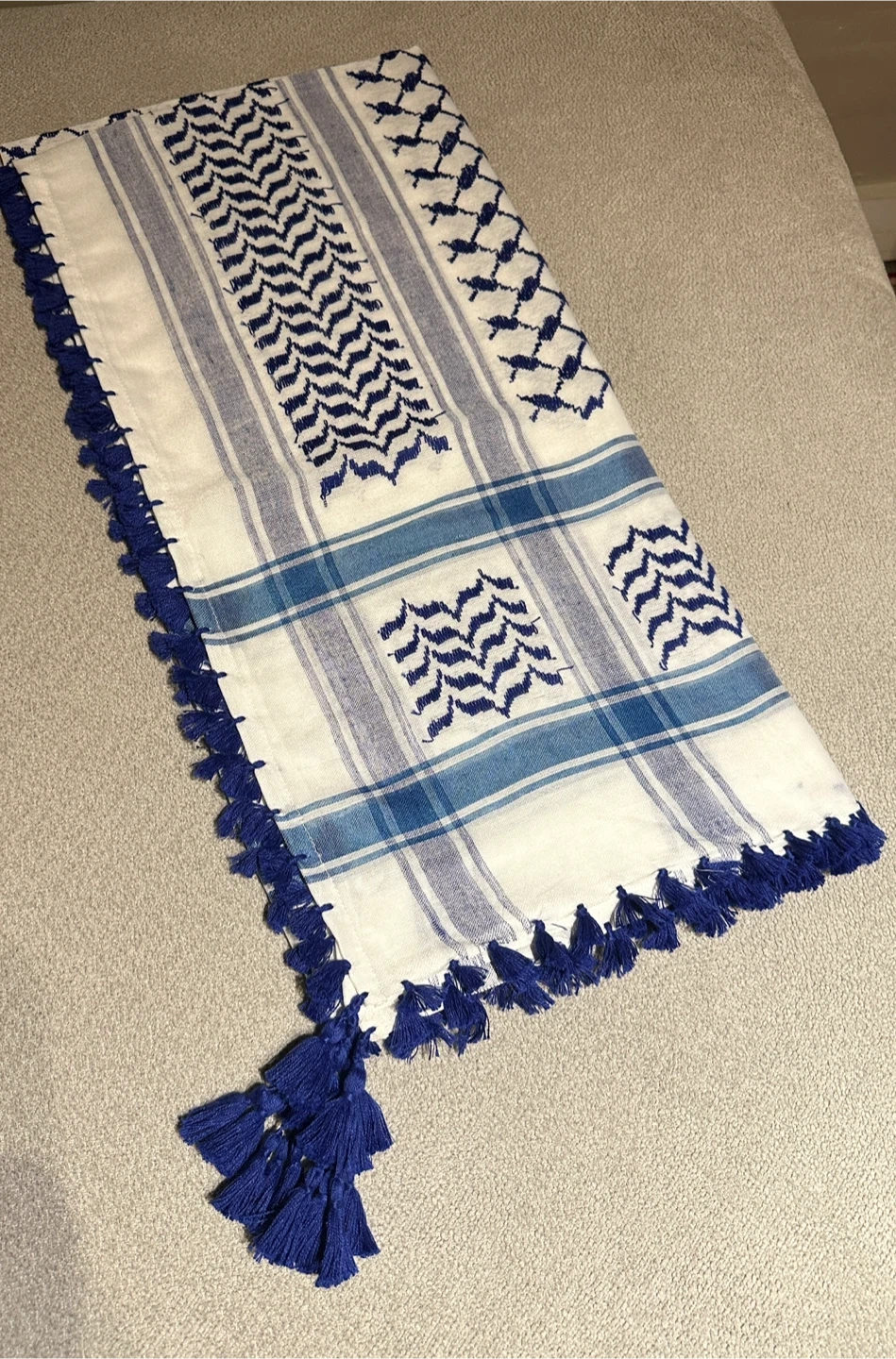 Blue and White Keffiyeh Scarf with Tassels