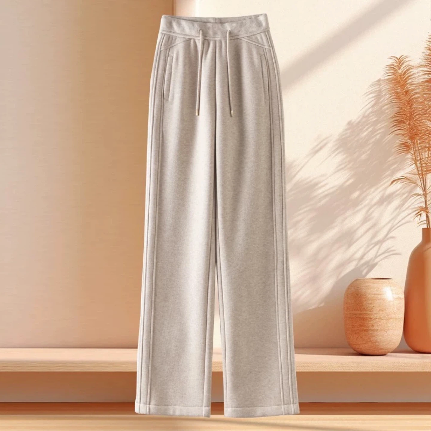 Oatmeal-colored silk and cashmere trousers