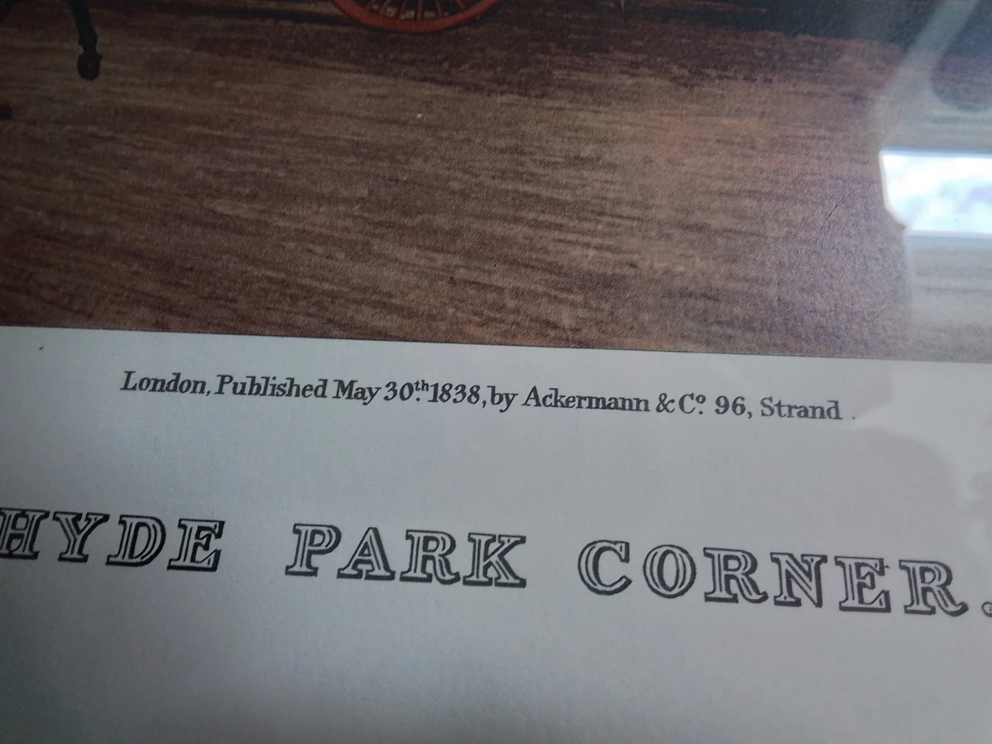 I'm offering a framed print titled 'Scenes on the Road, Or a Trip to Epsom and Back' from May 30th, 1838, published by Ackermann & Co. The print depicts 'Hyde Park Corner' and is in good condition, with dimensions of approximately 27x22 inches. Note this is a previously owned item.