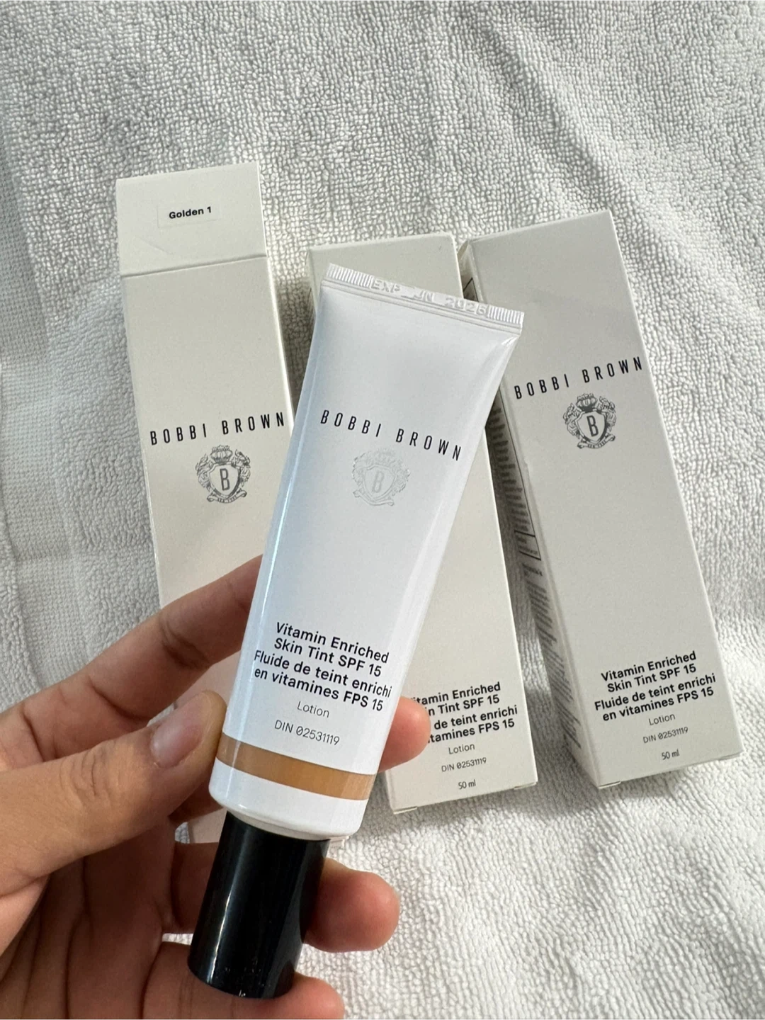 Bobbi Brown Vitamin Enriched Skin Tint SPF 15 Lotion in shade Golden 1. Each bottle contains 50 ml of product. It's a lightweight formula with SPF 15 protection.