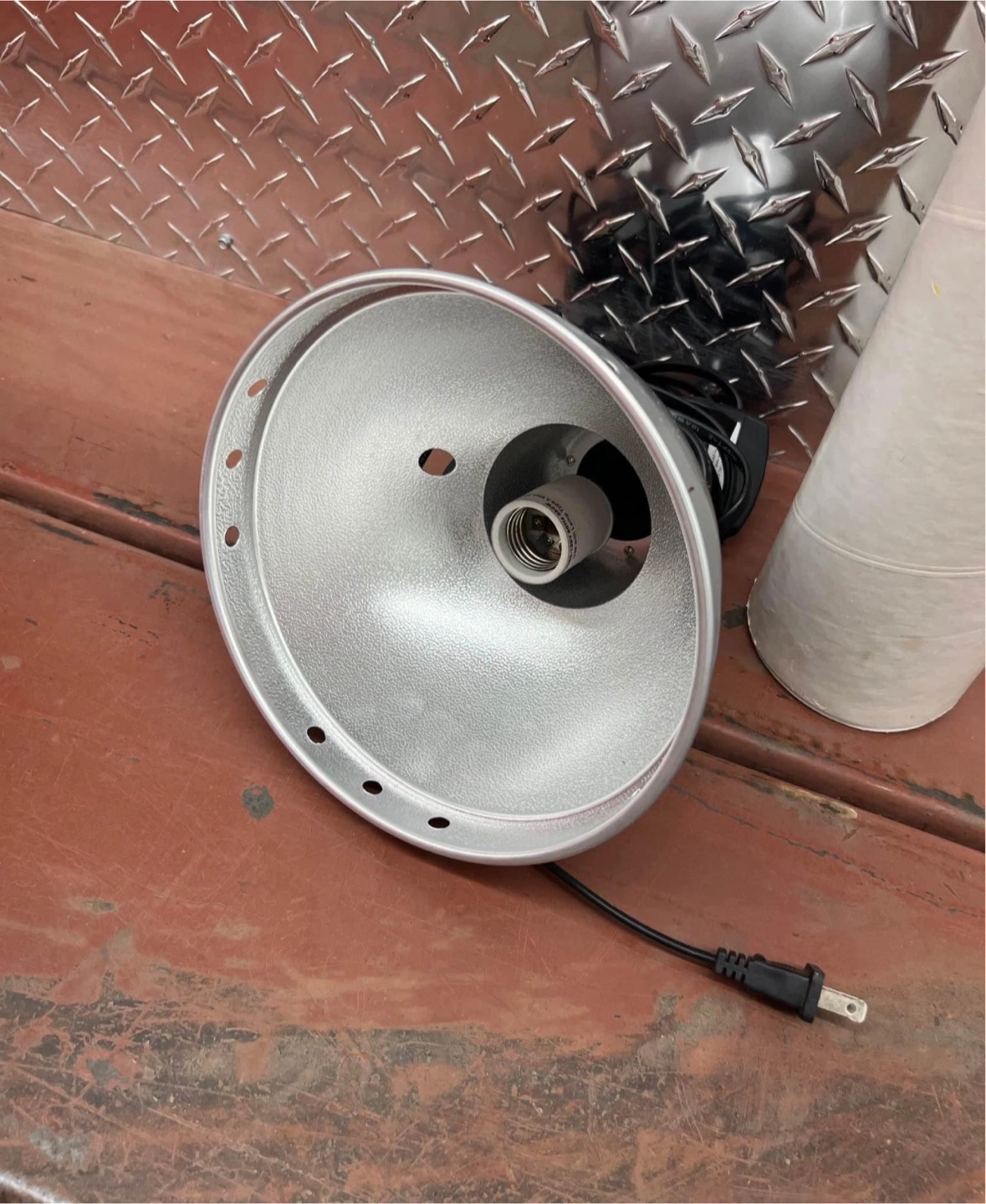 Professional 8ft light stand, includes light. Black stand, silver light.