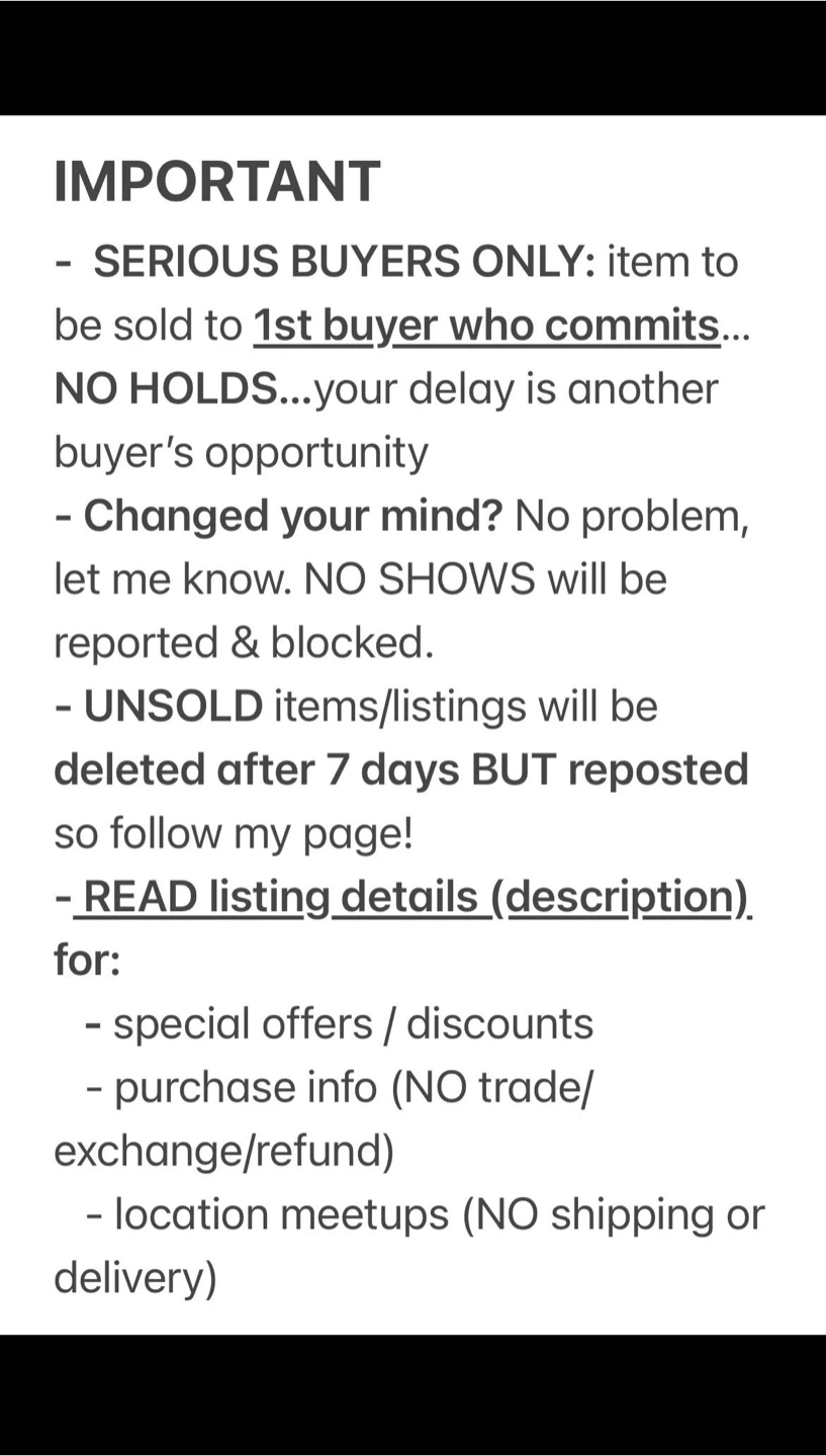 SERIOUS BUYERS ONLY / FINAL SALE / Cash Payment at pickup / NO HOLDS (Items will be sold on a FIRST-COME/PAYMENT-FIRST-SERVE basis!)