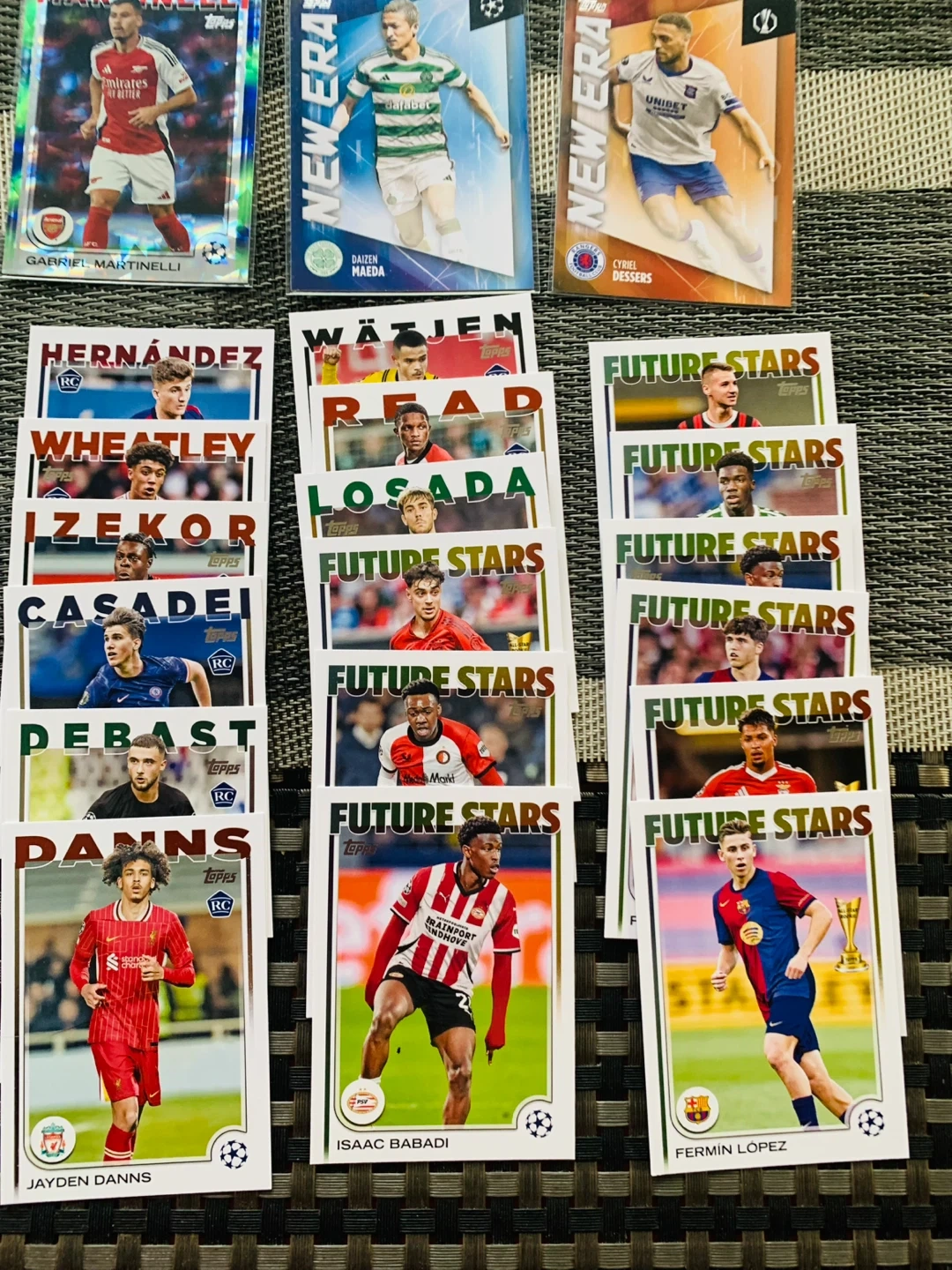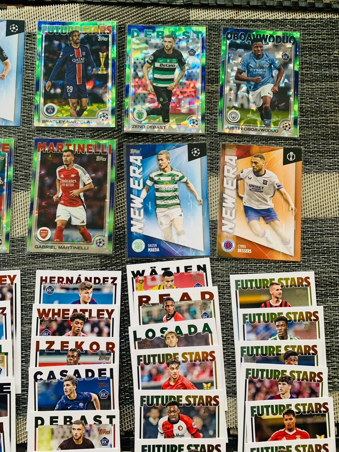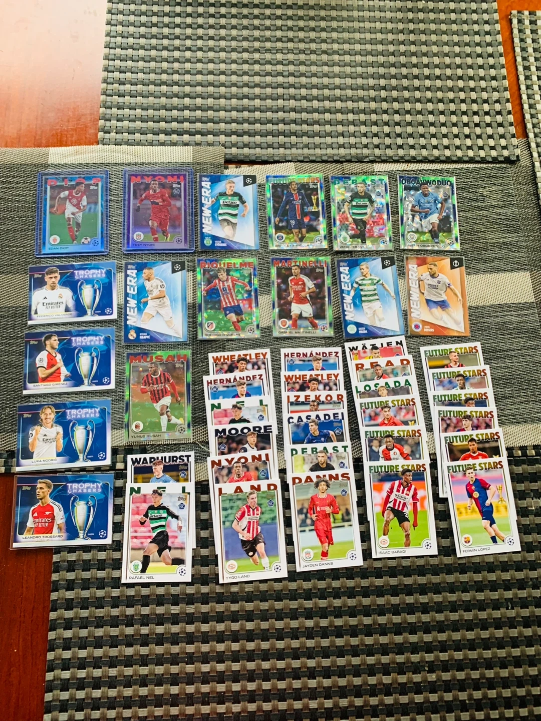 All 42 pulled straight out of box in excellent condition.. Some cards come in protective sleeves. Cards from UEFA Champions League, Europa League, and Conference League. $20 firm. Smoke Free Home.