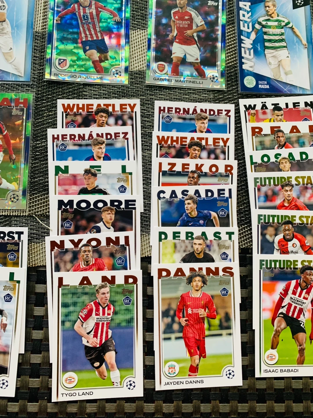All 42 pulled straight out of box in excellent condition.. Some cards come in protective sleeves. Cards from UEFA Champions League, Europa League, and Conference League. $20 firm. Smoke Free Home.