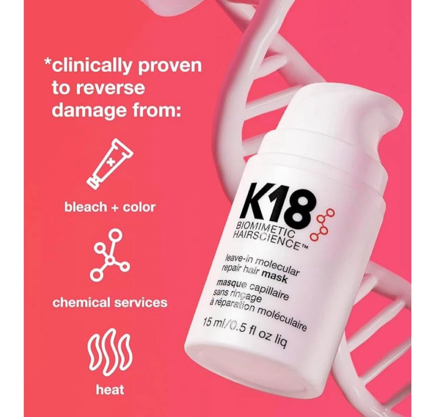 I have a brand new K18 Biomimetic Hairscience professional molecular repair hair mask for sale! This leave-in treatment is designed to repair hair damage from bleach, colour, chemical services, and heat. It comes in a 150ml/5 fl oz size. Retails over $120