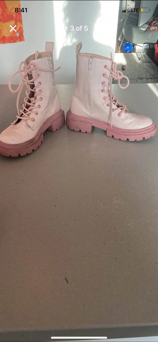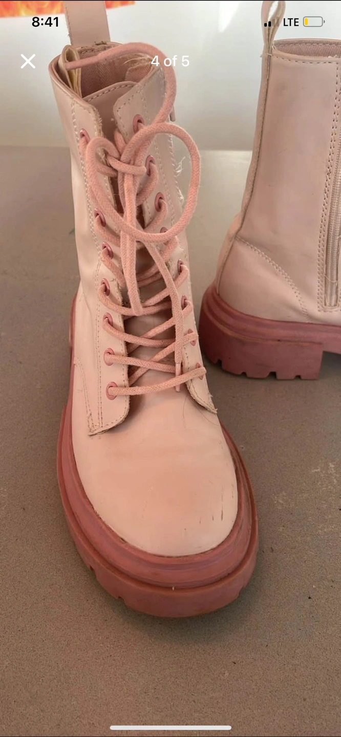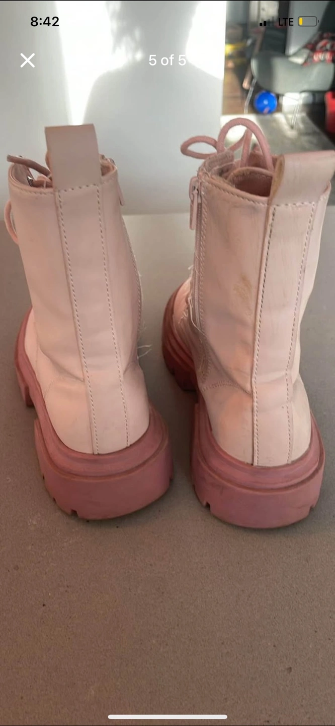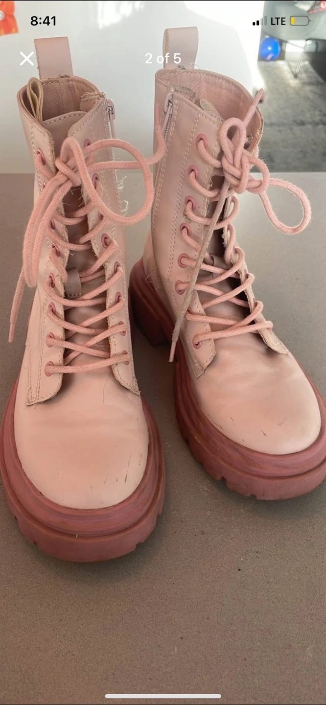 Girls Zara pink platform boots. Lace-up style with side zipper. Chunky sole. Good for everyday