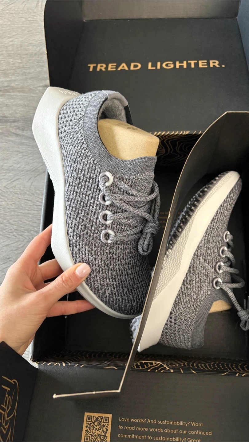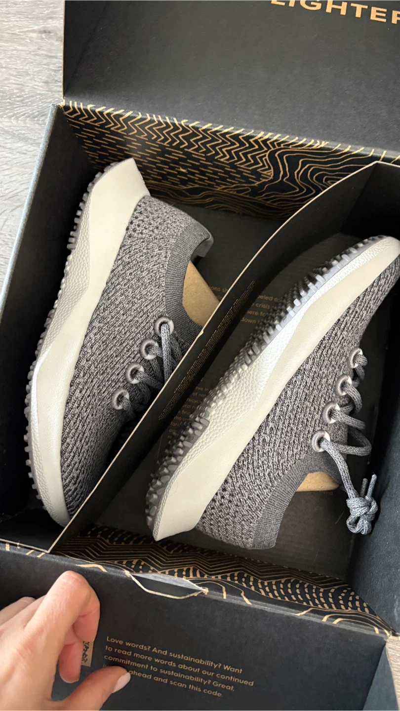 Selling a pair of Allbirds Tree Dasher 2 in Medium Grey (Light Grey). These are a Women's size 6.5 and come with the original box. They are lightweight and portable, perfect for everyday wear!