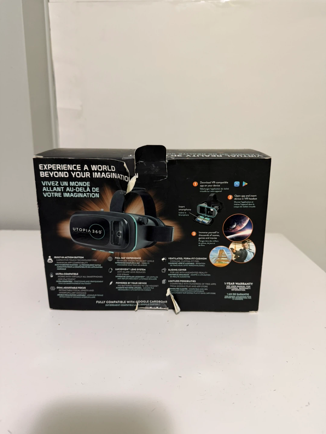 This Utopia 360 VR headset offers a full 360 experience with a Lucidview lens system to reduce eye strain. It's powered by your device, meaning no batteries are needed. The headset also has a ventilated, form-fit cushion for comfort and is compatible with Google Cardboard.