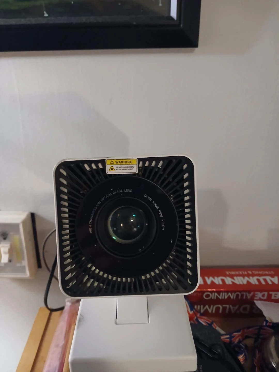 This digital projector features a white casing and a glass lens. It's a great way to display media on a larger screen. Easy to set up for movie nights or presentations! Only used twice i have a white pull down screen to in interested
