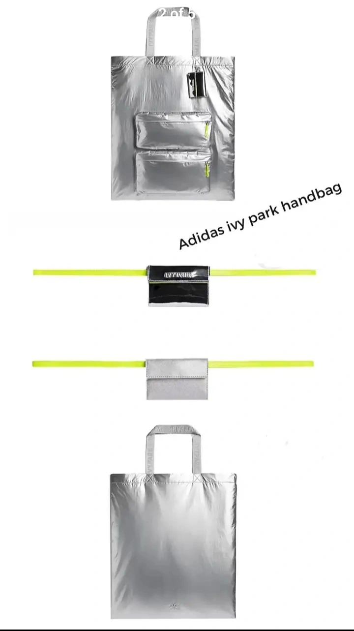 New!!! Adidas Ivy Park Metallic Silver Tote Bag & Belt Bag Set