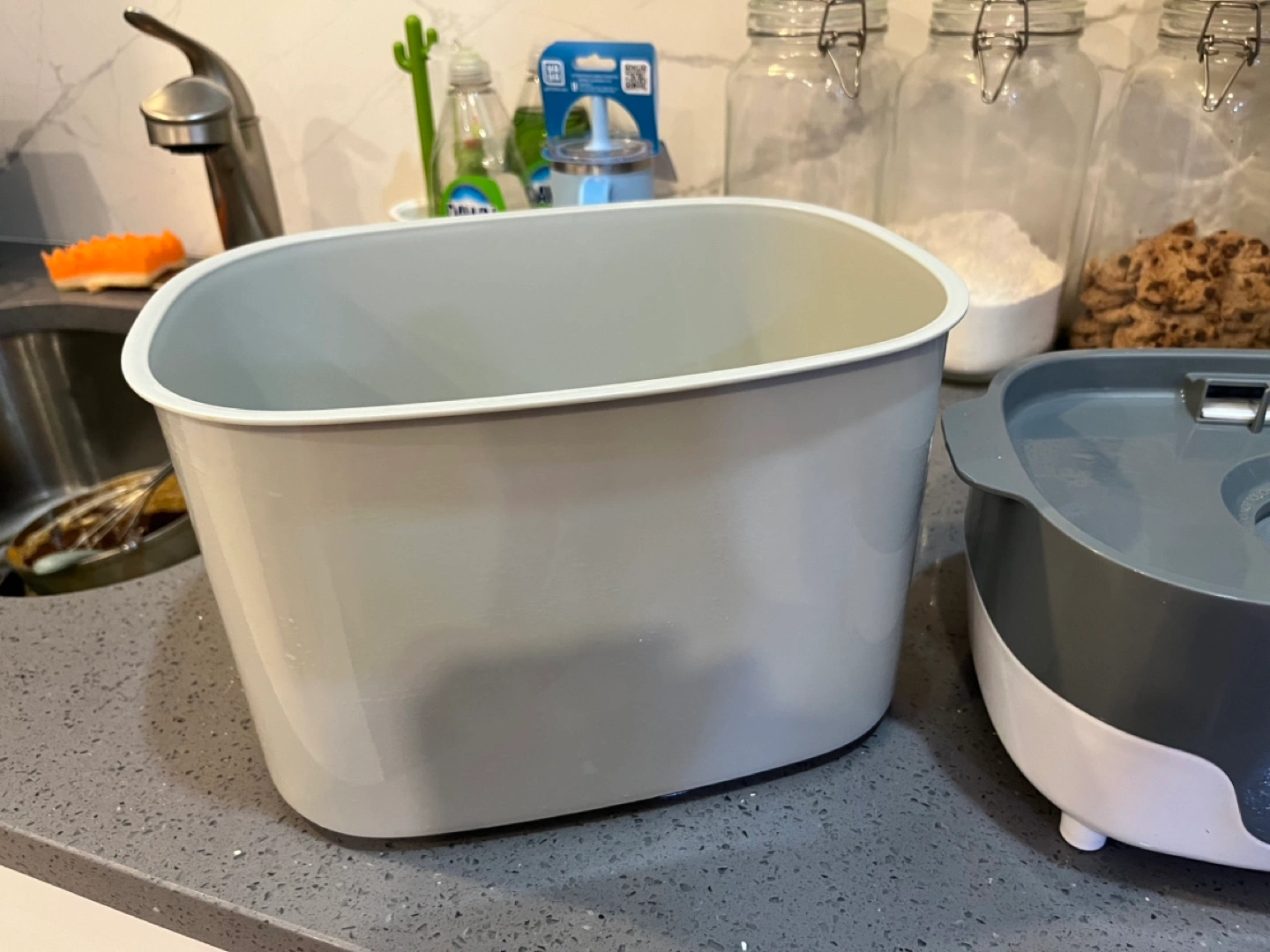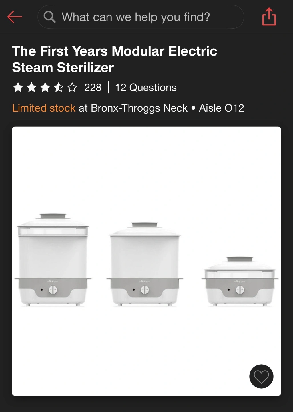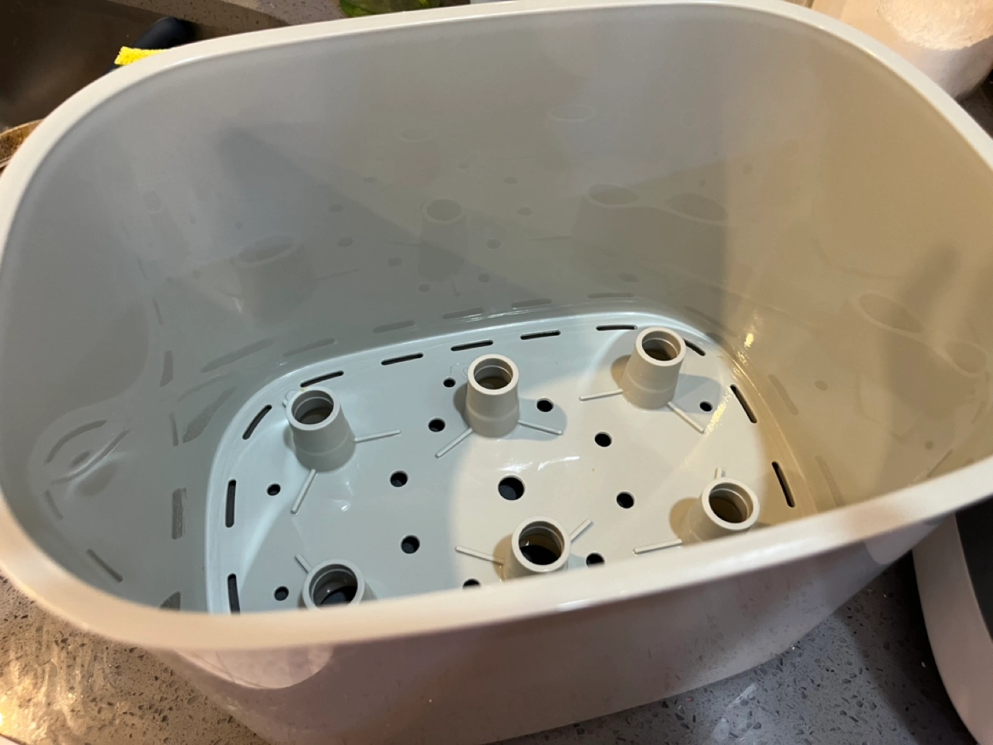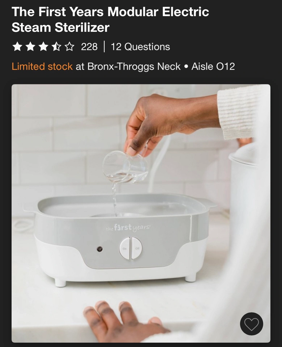 Baby bottle and item sterilizer. Gray and white. Includes removable basin and top rack. Gently used. Purchased in January 2024, retail price $70. Cash only.