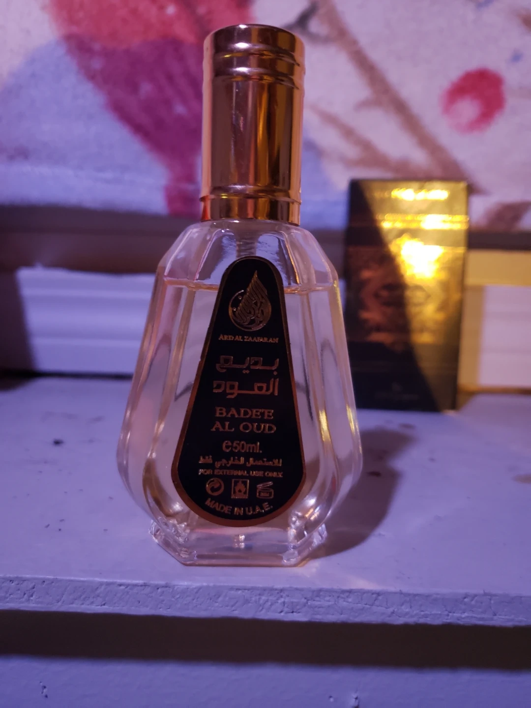 Ard Al Zaafaran Badee Al Oud Eau de Parfum. It's a 50ml bottle. For external use only. Made in U.A.E. used a few times 20$ would prefer trade. Pickup only