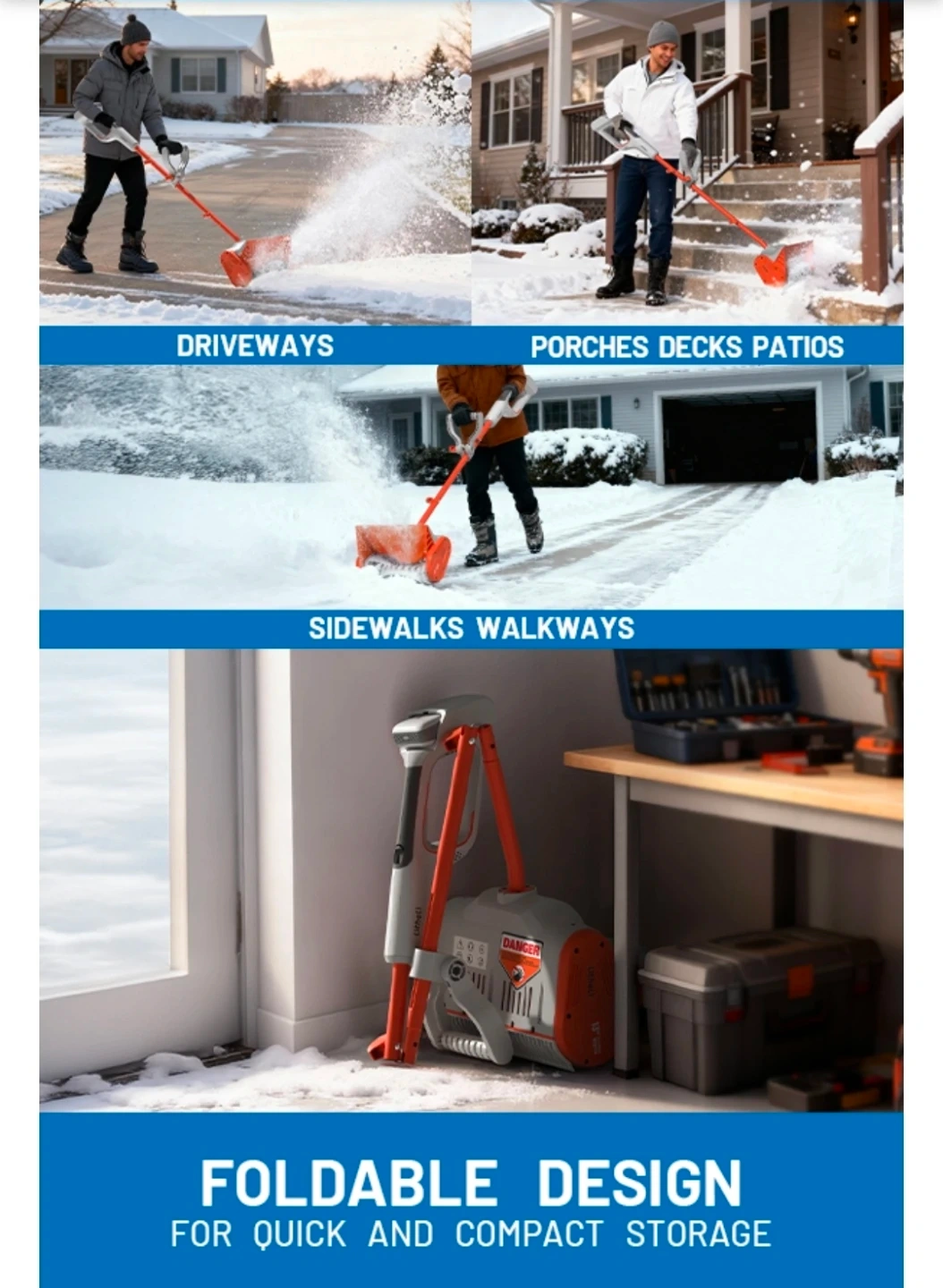 Perfect for quick snow removal on driveways, sidewalks, and decks! 🏠❄️