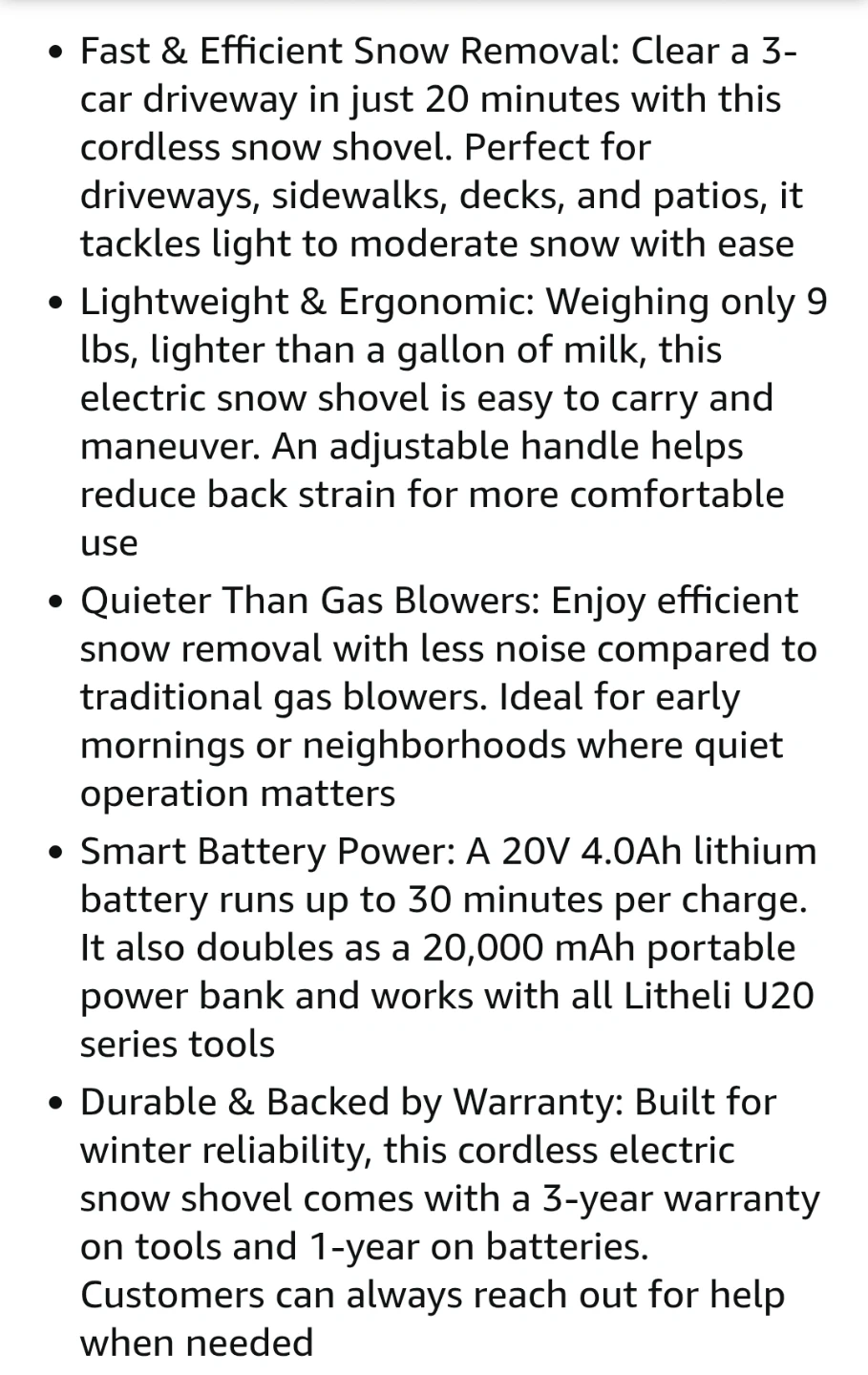 ❄️ Litheli 20V 13" Cordless Electric Snow Shovel