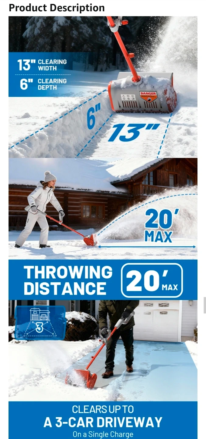 ❄️ Litheli 20V 13" Cordless Electric Snow Shovel