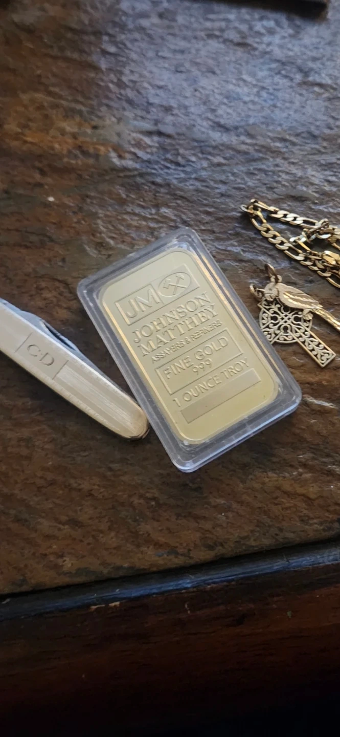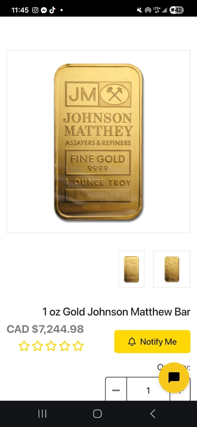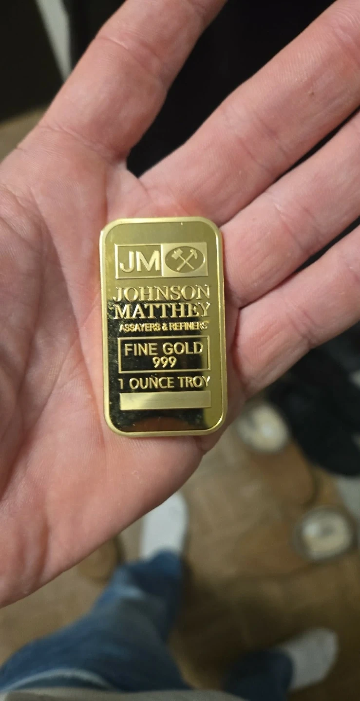 Buy & SellJohnson Matthey 1 oz Fine Gold BarJohnson Matthey 1 oz Fine Gold Bar$6,500Johnson Matthey 1 ounce troy fine gold bar. Purity is 999.9 fine gold.WHERE TO MEETCheck LocationView MapSELLERverifiedCameronWestern Hill600 reviews0 chats·0 favorites·36 viewsSEND CHAT TO SELLERHi Cameron! I’m interested in your listing.Hi Cameron! I’m interested in your listing.Get the Karrot app to chatSign In to chat