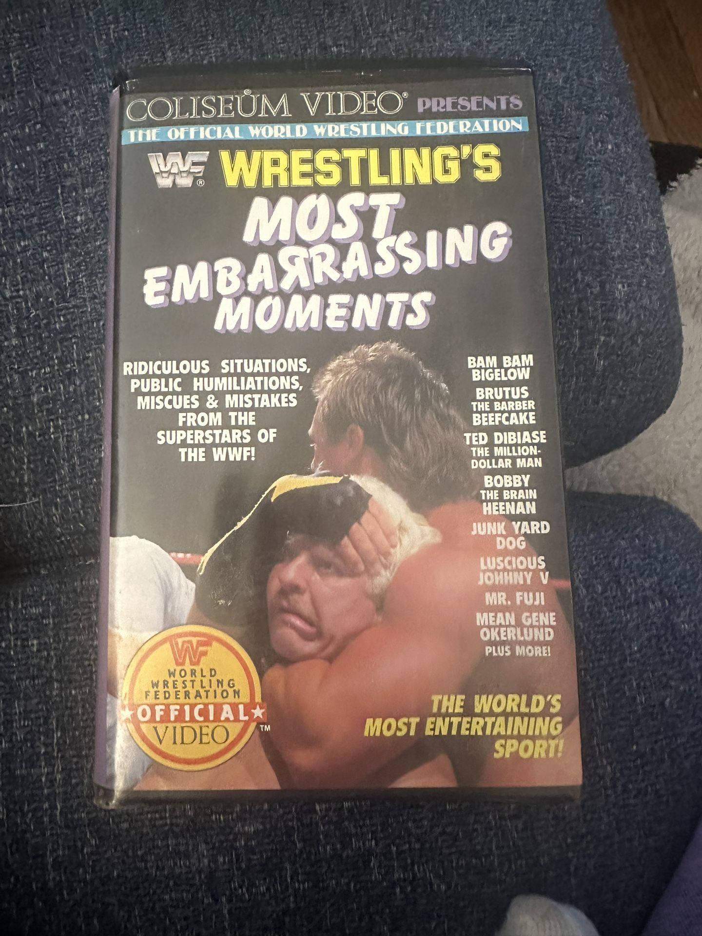 This is a rare VHS tape featuring 'Wrestling's Most Embarrassing Moments'. Let me know if you're interested!
