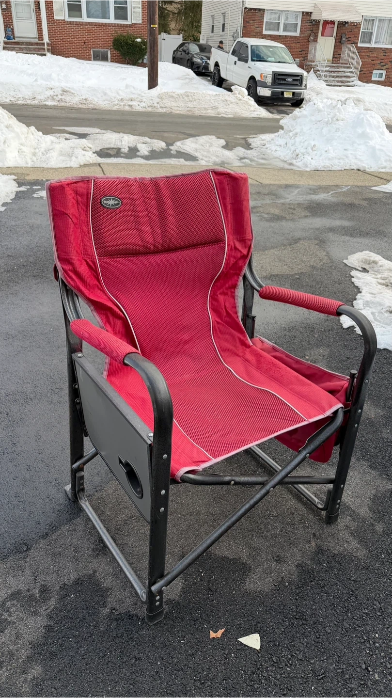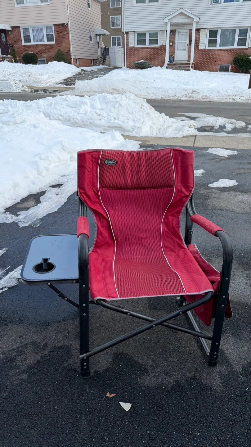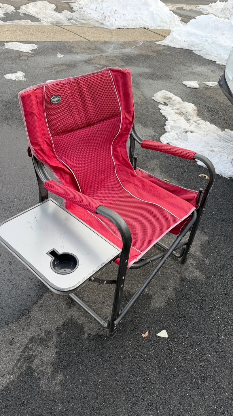 Red Folding Camp Chair with Side Table
