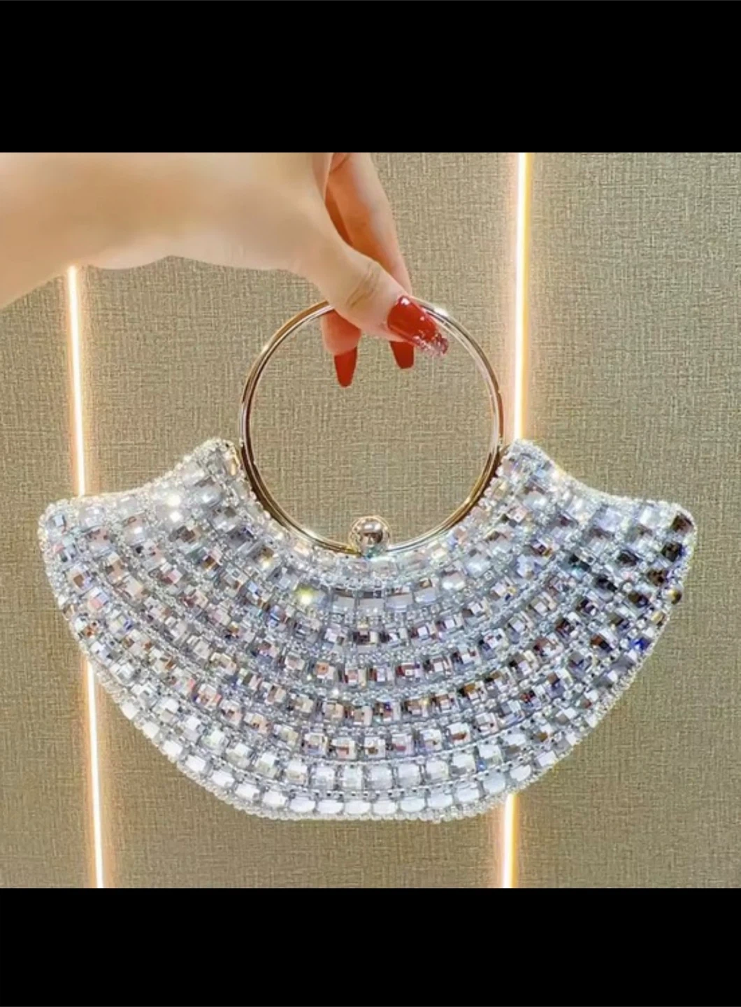 Crystal Embellished Fan Clutch Purse with Ring Handle