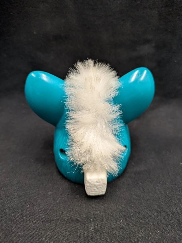 1998 - Turquoise Furby - fluttering eyes & purrs - 3" tall - slight wear on front.