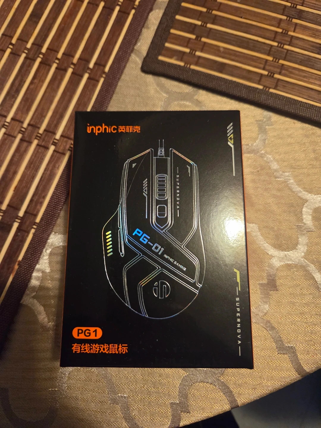This is an Inphic PG1 wired gaming mouse. It's designed for PC gaming and connects via USB. The mouse features optical tracking and is compatible with Windows operating systems.