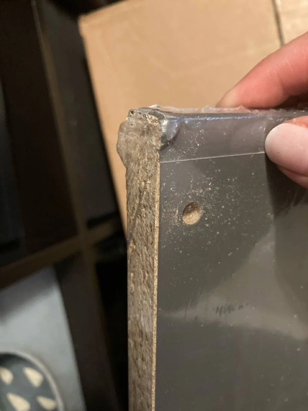 Corners were banged up in transit, so the shelves are not perfect (IKEA sells new for $15 + HST each: https://applink.ikea.com/tY8M9r9M4w--90509145--ca--en)