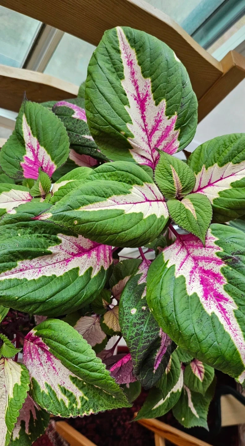 Selling a lovely Coleus plant with vibrant green, pink, and white leaves. It's a beautiful addition to any indoor space and adds a pop of colour!