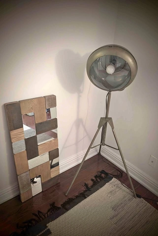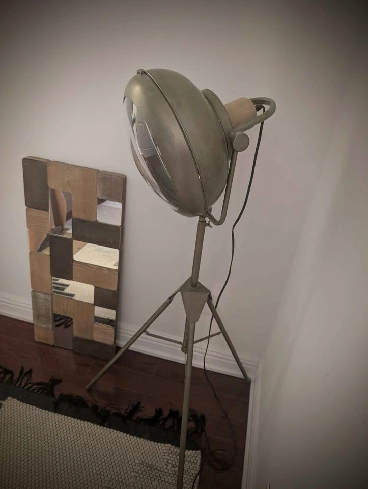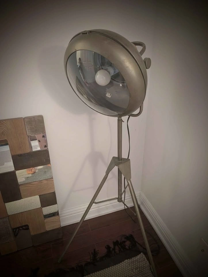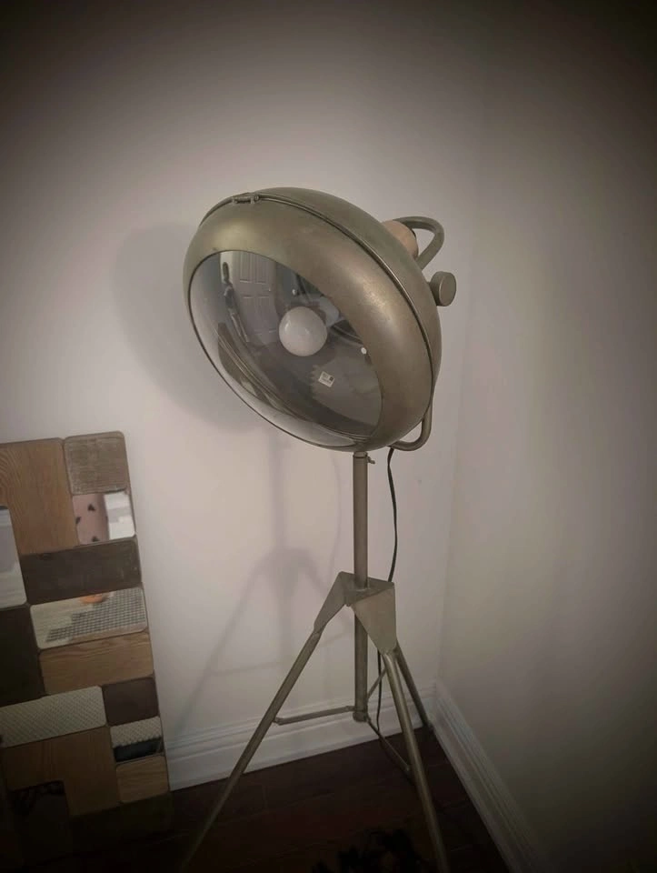 Vintage Floor Lamp – Antique Brass Spotlight with Tripod