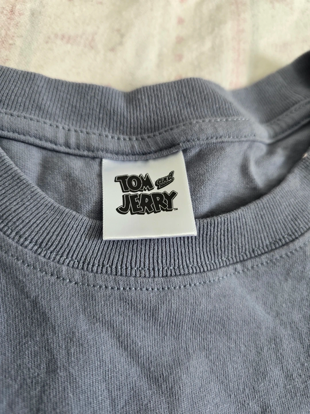 Grey t-shirt featuring Tom and Jerry graphics on the chest pocket. Made of 100% cotton.