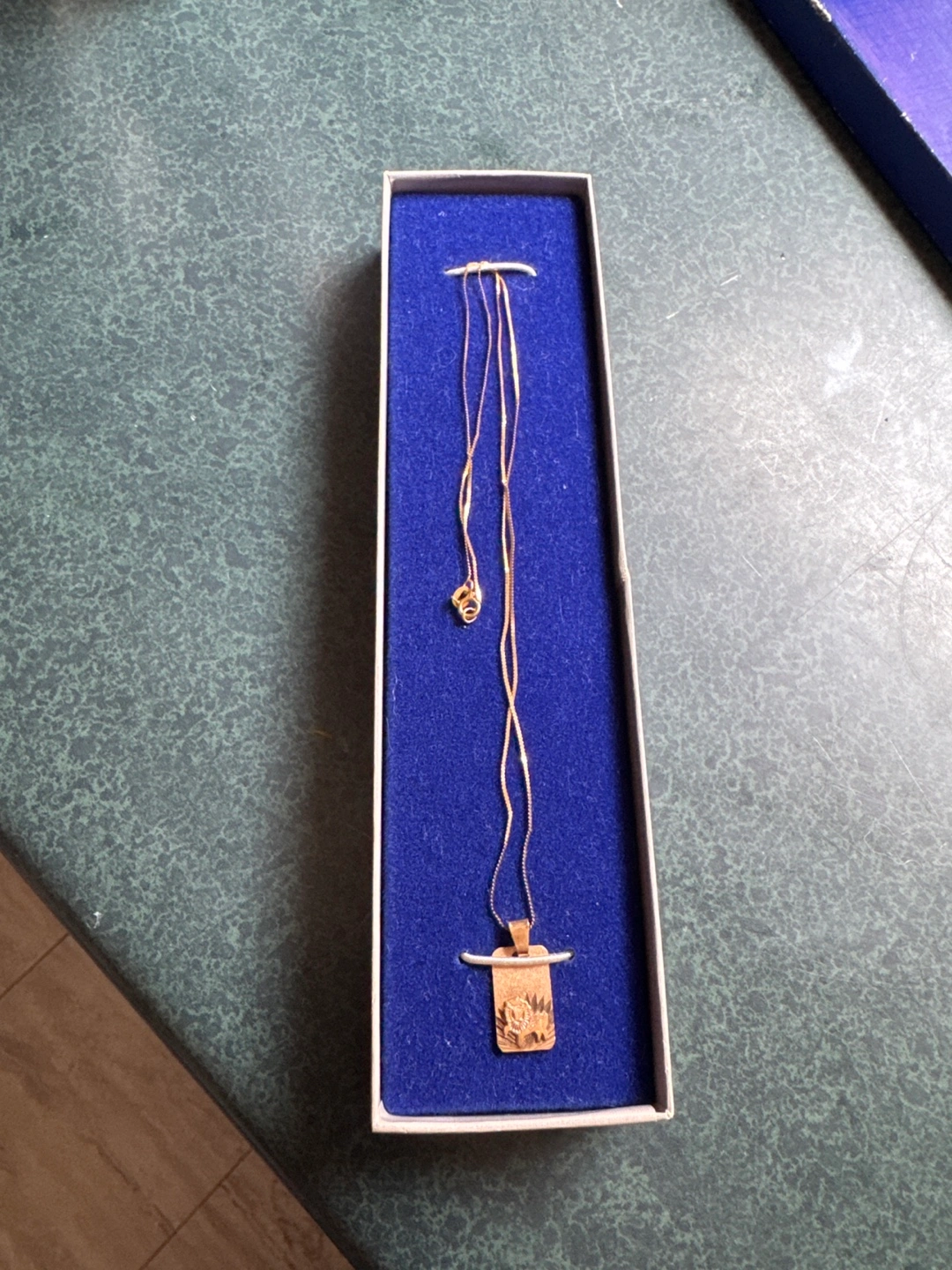 Vintage 10k gold pendant necklace. A delicate chain supports a rectangular pendant, embellished with a Leo symbol.