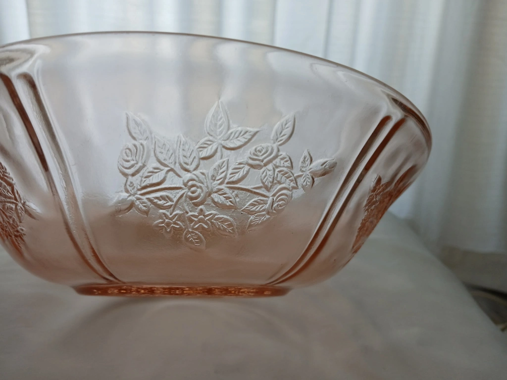 Buy & SellVintage Pink Depression Glass BowlVintage Pink Depression Glass Bowl$15Beautiful vintage pink depression glass bowl. Features a lovely rose pattern. Excellent for serving or display.WHERE TO MEETkerrisdale community centreView MapSELLERLorettaKerrisdale301 review1 chats·0 favorites·31 viewsSEND CHAT TO SELLERHi Loretta! I’m interested in your listing.Hi Loretta! I’m interested in your listing.Get the Karrot app to chatSign In to chat