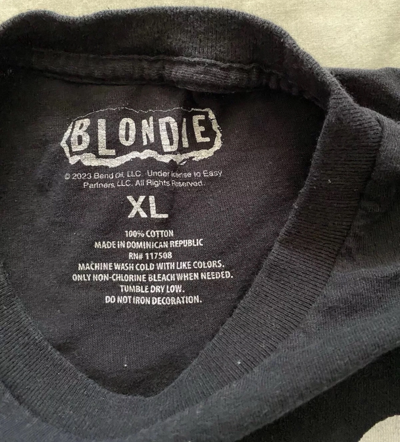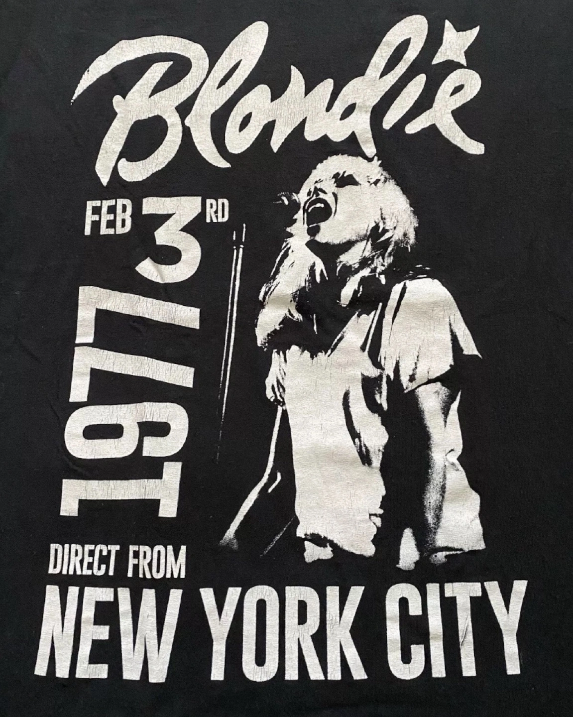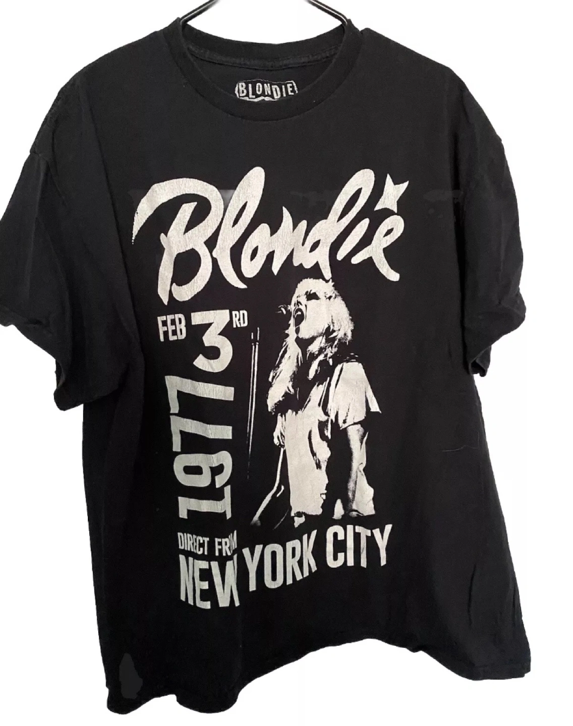 Black t-shirt featuring a picture of Blondie, the text 'Feb 3rd 1977', 'Direct From New York City', and 'Blondie' on the front. Size XL.
