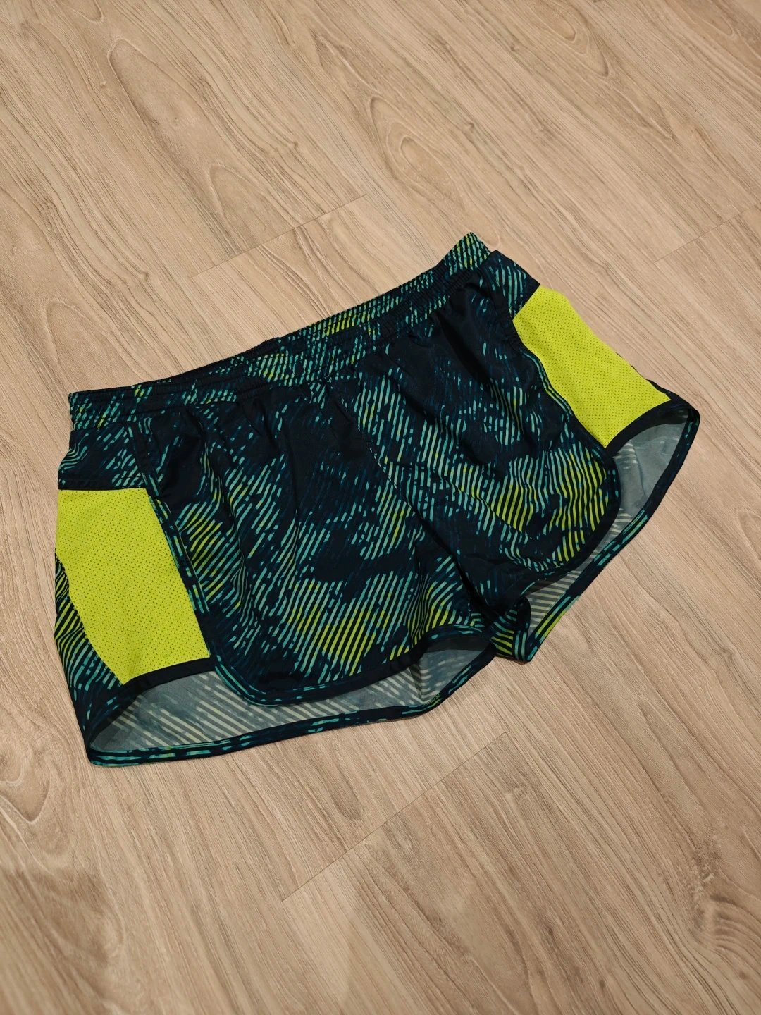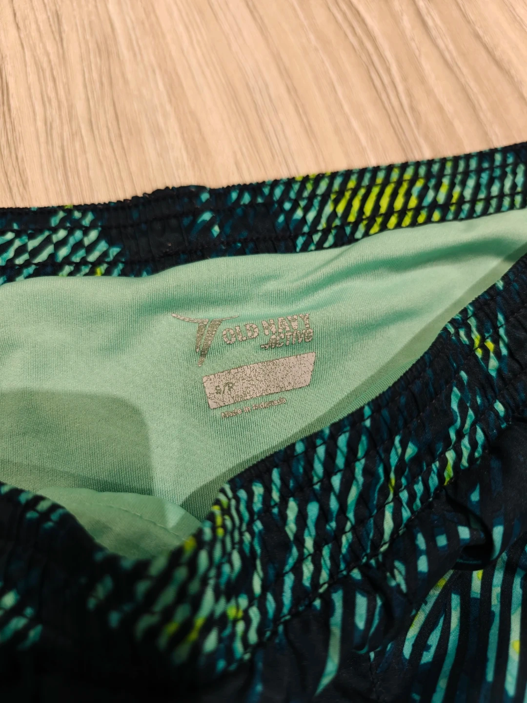 These Old Navy Active running shorts have a cool abstract pattern in blue and green. They're a size S/P with mesh accents on the sides for breathability. Perfect for hitting the track or trail!