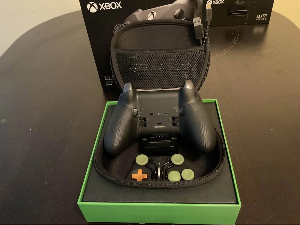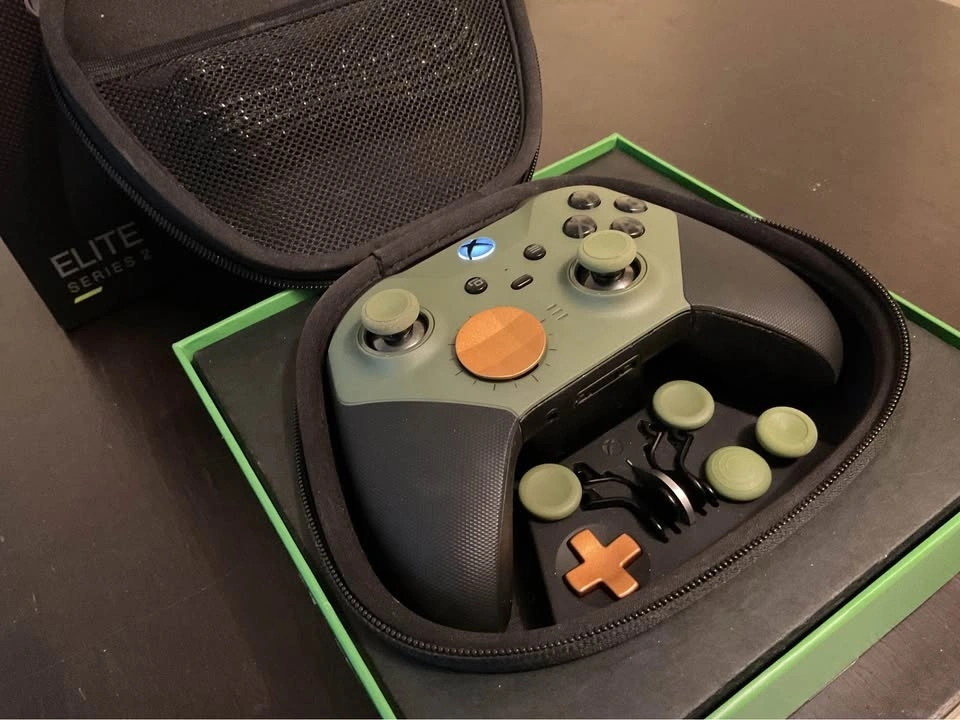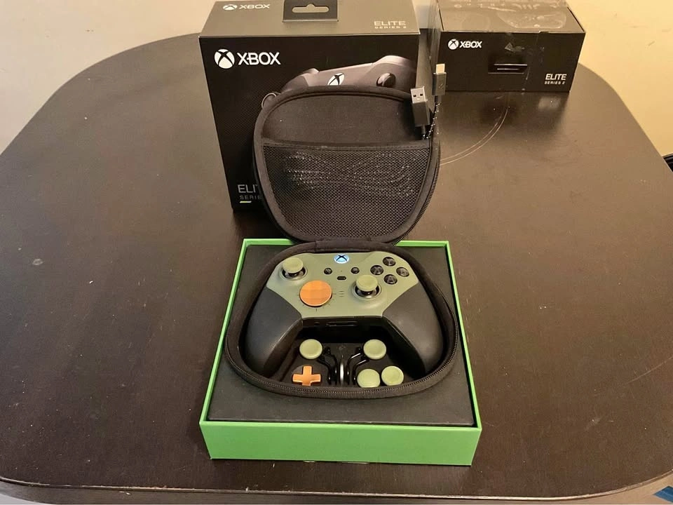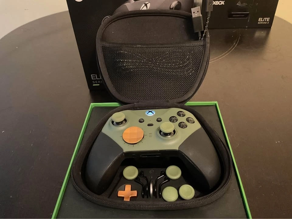 For Xbox Series X/S, Xbox One, Windows, Android, and IOS. New Elite Series 2 controller, open box in excellent condition. Custom Halo Infinite Green coloured thumbsticks, Yellow d-pads, and Black paddles. No stick drift or any sticky button. Elite Series 2 controller with case, box and all accessories including charging dock and usb-c cable. Test controller before you buy. Please see photos and ask any questions you may have before purchase. All sales are final, but if something happens to the controller I will replace with a new one within 2 months, excluding physical or cosmetic damage. Please ask questions to confirm.