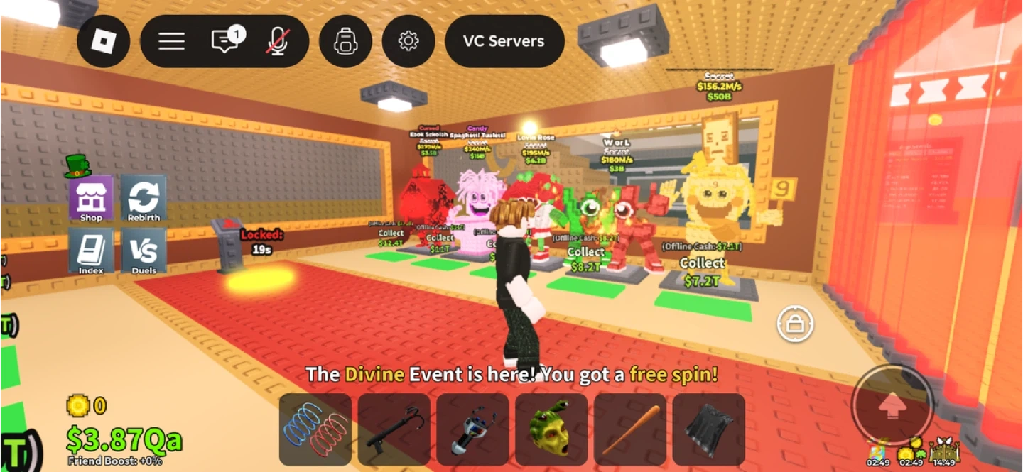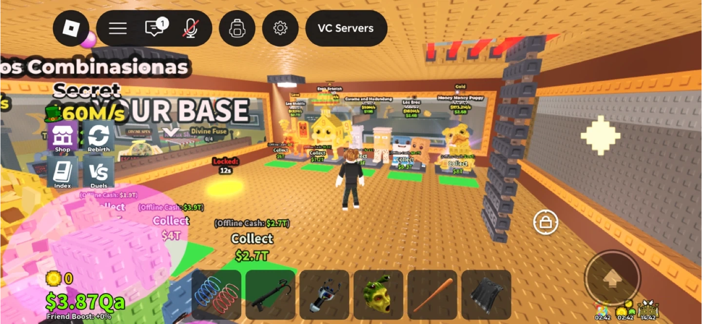 Selling my base whole thing Virtual items from a Roblox game. These appear to be digital collectibles or in-game currency boosters. Obtainable within the game environment.