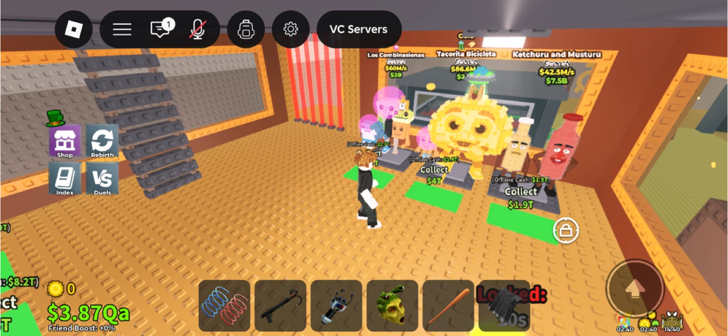 Selling my base whole thing Virtual items from a Roblox game. These appear to be digital collectibles or in-game currency boosters. Obtainable within the game environment.