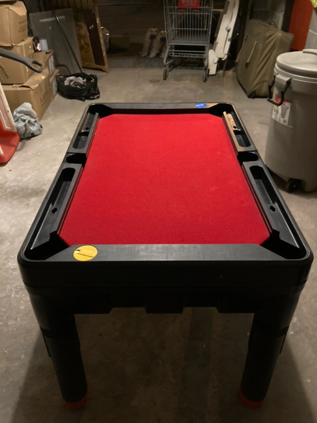 5ft length 2 1/2 ft width and 2ft height pool table red felt no scratches excellent condition price is firm! Storage compartment and legs screw off for easy storage. Make me a reasonable offer! Serious replies only