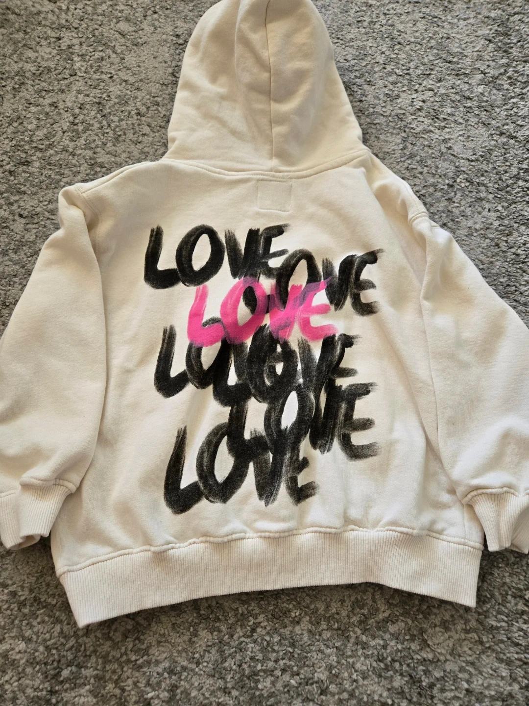 Selling a cute bundle of girls' size 8-9 hoodies! One is a Hello Kitty and Friends sweatshirt in pink and the other is an off-white hoodie with the word "LOVE" on it. Both are in great condition and ready for a new home!