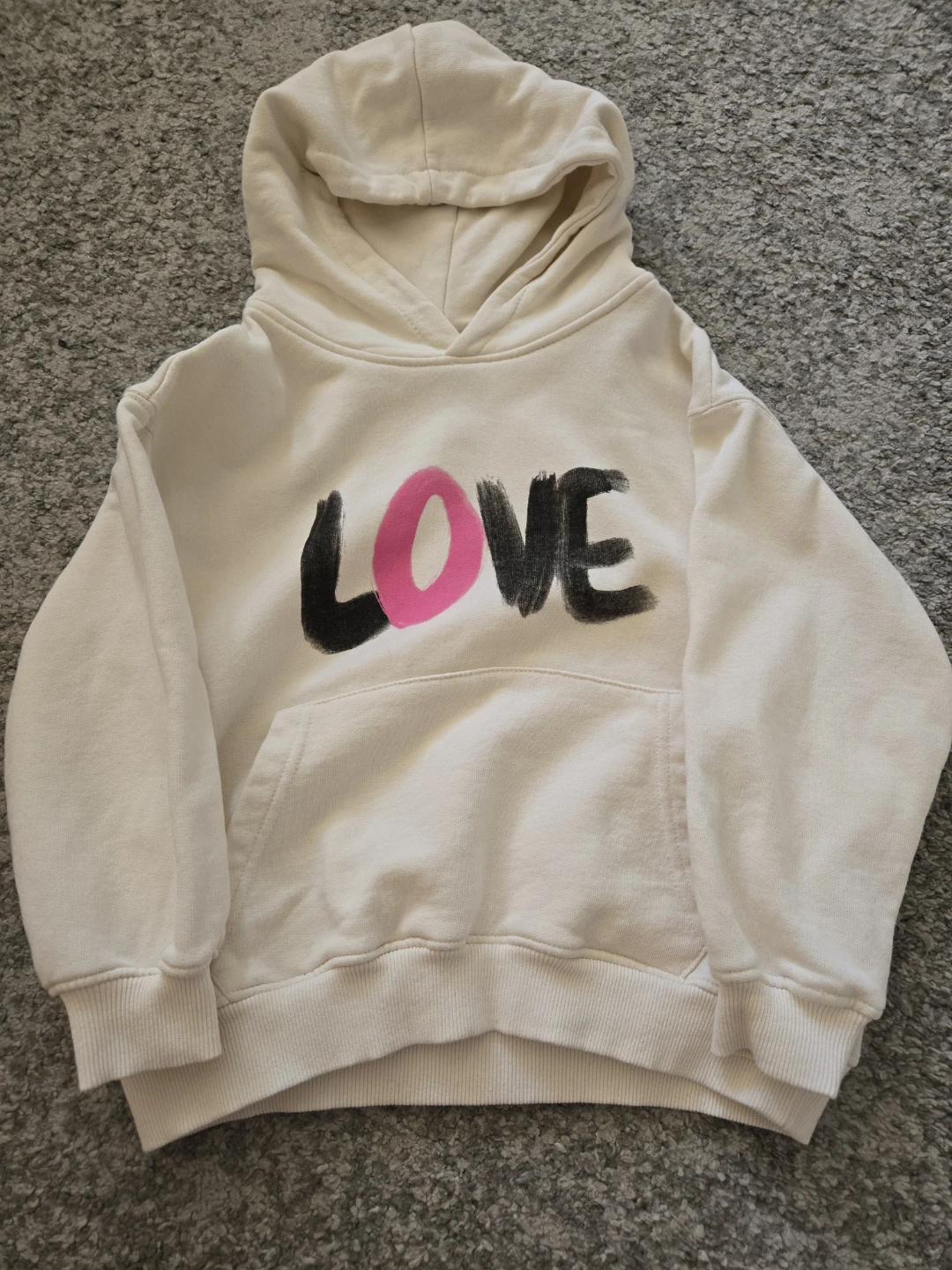 Selling a cute bundle of girls' size 8-9 hoodies! One is a Hello Kitty and Friends sweatshirt in pink and the other is an off-white hoodie with the word "LOVE" on it. Both are in great condition and ready for a new home!