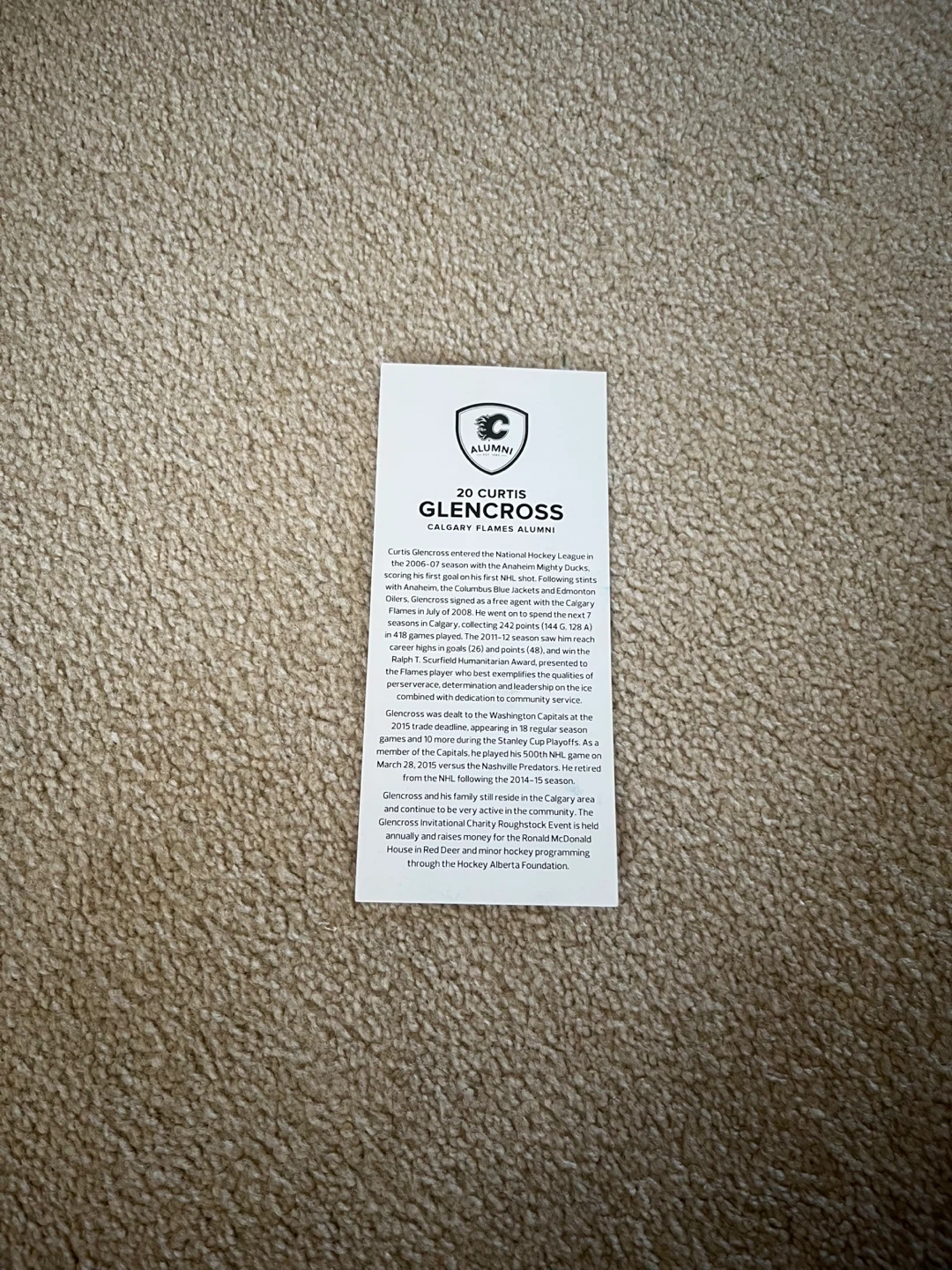 I’ve got an autographed Curtis Glencross Calgary Flames Alumni card. Great for any Flames fan or hockey memorabilia collector!